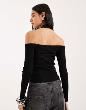 Draped Cowl Halterneck Top, Black