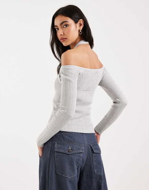Teen Cut Out Long Sleeve Top In Light Grey
