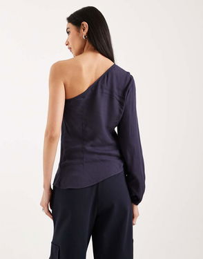 Teen One Shoulder Long Sleeve Top In Navy