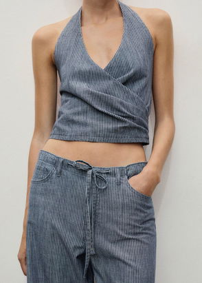 Striped Crossover Denim Top