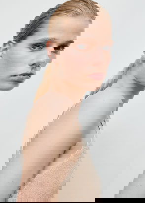 Roll Neck Knitted Top With Flare Sleeves In Grey