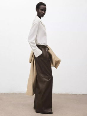 Faux Leather Tie Waist Trouser In Brown