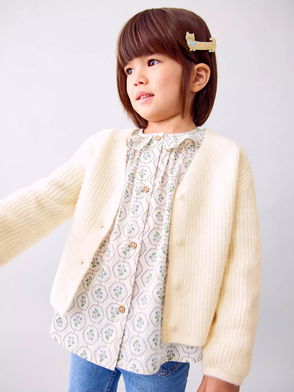 Kids' Freya Plain Cardigan, Natural White