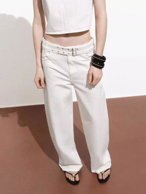 Kika Balloon Fit Mid Waist Jean With Tie Belt Detail