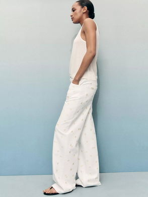 Massy Cotton Flower Embroidered Wide Leg Jeans