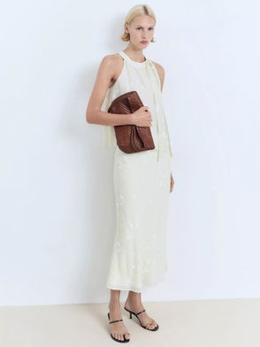 Ariel Floral Side Slit Midi Skirt, Natural White