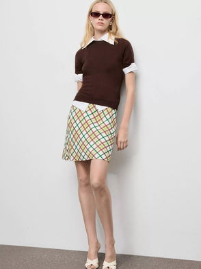 Limon Cotton Striped Asymmetric Skirt, Natural White