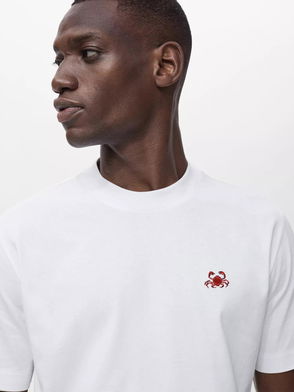 Cotton Regular Fit Short Sleeve Crab Embroidered T-Shirt, White