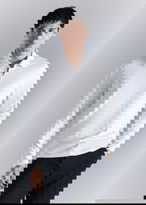 Gareth Cotton Regular Fit Long Sleeve Polo Shirt, White