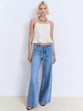 Gonzalo Cotton Blend Crochet Strap Top, Natural White