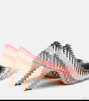 Raffro Leather-Trimmed Raffia Slingback Pumps