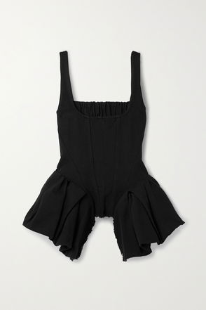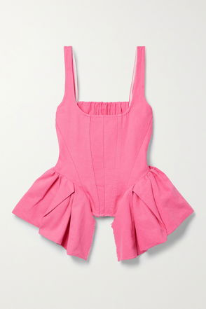 Asymmetric Cotton-Poplin Peplum Bustier Top