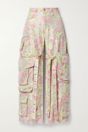 Brocade Wide-Leg Cargo Pants