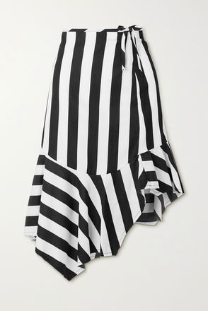 Asymmetric Striped Cotton-Voile Flared Midi Skirt