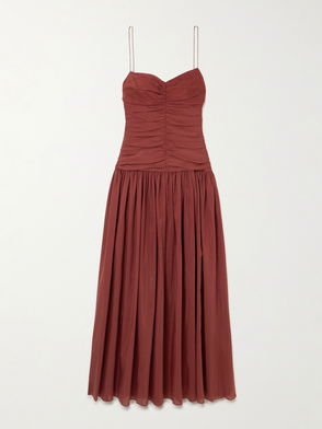 Gathered Organic Cotton And Silk-Blend Midi Dress