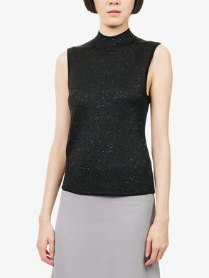 Sequin-Embellished High-Neck Shimmer-Knit Vest