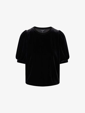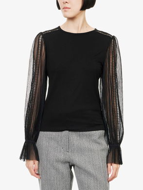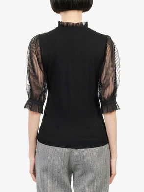 Lace Insert Short-Sleeves Stretch-Woven Top