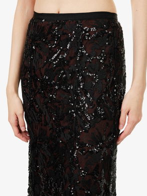 Sequin-Embellished Mesh-Overlay Maxi Skirt