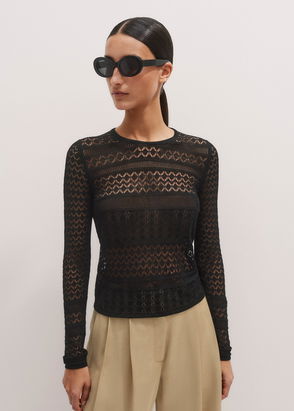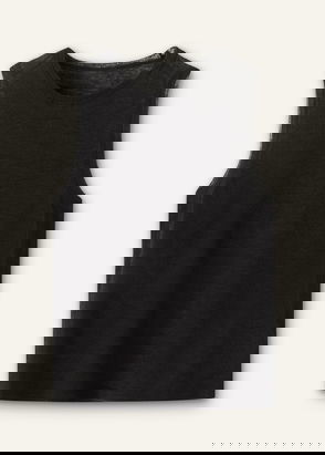 Merino Cashmere Barely There Buttoned Knit Tee Black