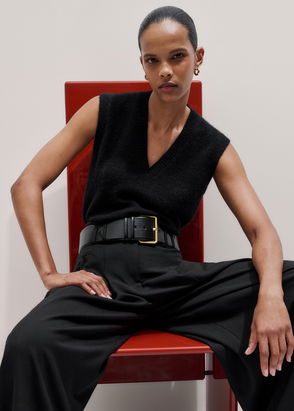Cashmere Grown-On Neck Straight Knit Vest Black