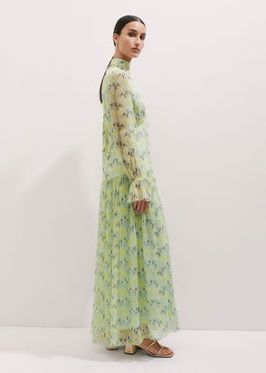 Silk Tulip Print Full Length Dress + Tie Yellow/Green/Multi
