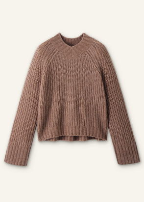 Merino Cashmere Silk Boxy Crop Lofty Rib Jumper Camel Mélange