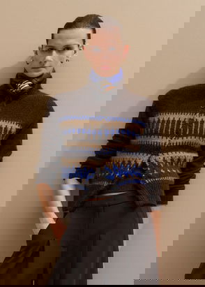 Button-Through Relaxed Jacquard Vest Chocolate Multi