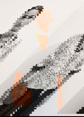Silk Am-Pm High Neck Top + Embellished Collar Light Cream