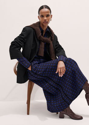 Houndstooth Jacquard Ponte Maxi Dress Navy Multi