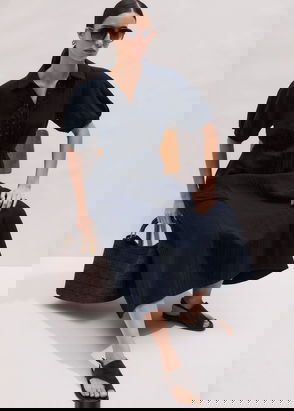 Modern Twill Contrast Stitch Midi Dress + Belt Black