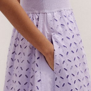 Knit + Broderie Mixed Media Midi Dress Powder Lavender
