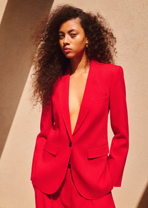 Pop Colour Sharp Shoulder Straight Blazer Lipstick Red
