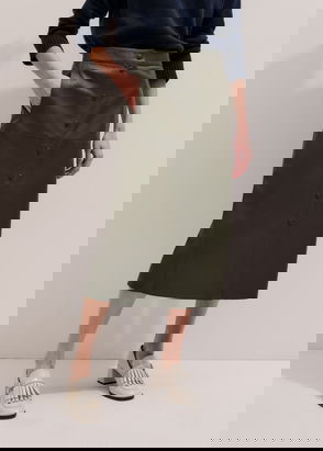 Straight Button Front Maxi Skirt Intense Olive
