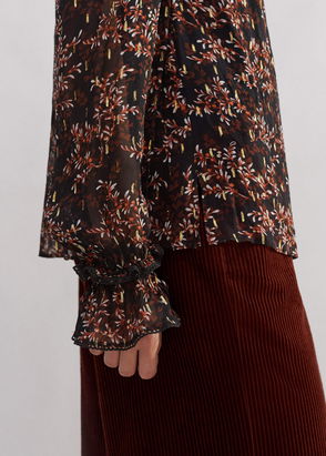 Silk Delicate Paisley Print Blouse + Tie Cream/Green/Multi
