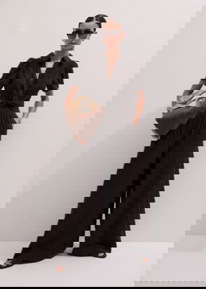 Silk Statement V-Neck Maxi Dress + Belt Black