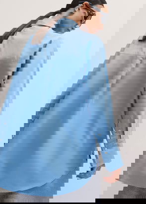 Supersoft Cotton Poplin Oversized Wide-Sleeve Shirt Chambray Blue