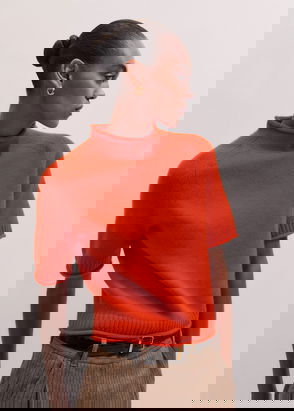 Cashmere Roll Trim Knit Tee Vivid Orange