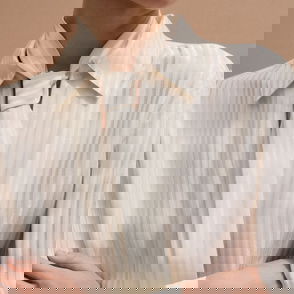 Am-Pm Stripe Fluid Satin Shirt + Tie Light Cream
