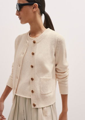 Merino Cotton Milano Knit Extreme Sleeve Crop Cardi Cream