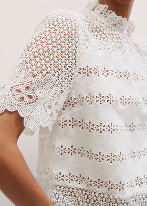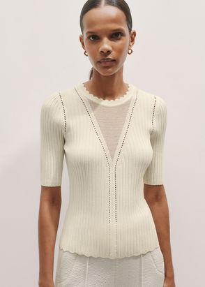Conceal + Reveal Lace Knit Slim Tee Cream