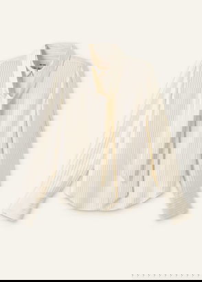 Am-Pm Stripe Fluid Satin Shirt + Tie Light Cream