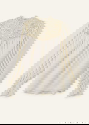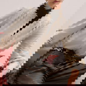 Silk Am-Pm High Neck Top + Embellished Collar Light Cream
