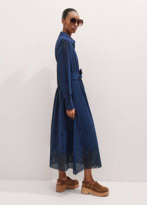 Cotton Broderie Border Maxi Shirt Dress + Belt Intense True Blue