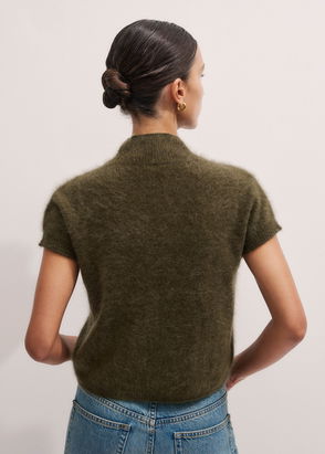 Brushed Cashmere High Neck Knit Baby Tee Intense Olive