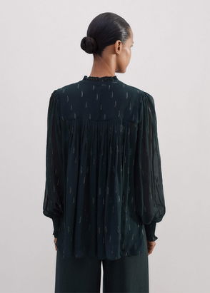 Silk Crinkle Metallic Swing Blouse + Cami Gable Green/Silver