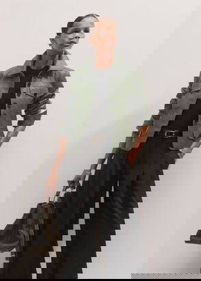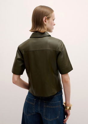 Washed Leather Fitted Utility Jacket Bright Olive