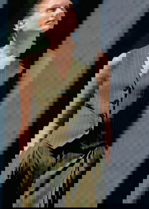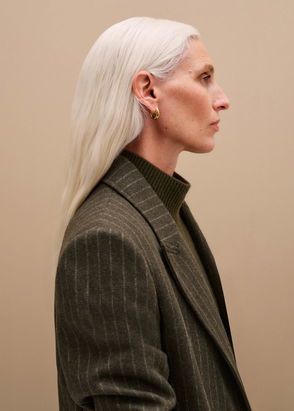 Italian Tailored Stripe Relaxed Blazer Deep Olive/Vanilla