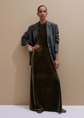 Draped Halterneck Maxi Dress Golden Olive Green
