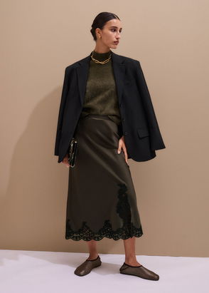 Satin Lace Maxi Skirt Intense Olive