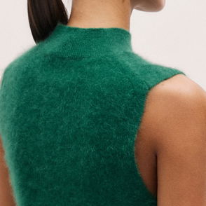 Brushed Cashmere High Neck Slim Knit Vest Eden Green